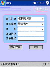 1 交易:点击进入认证页面,选择您开户的营业部,输入帐号、通讯密码、交易密码。